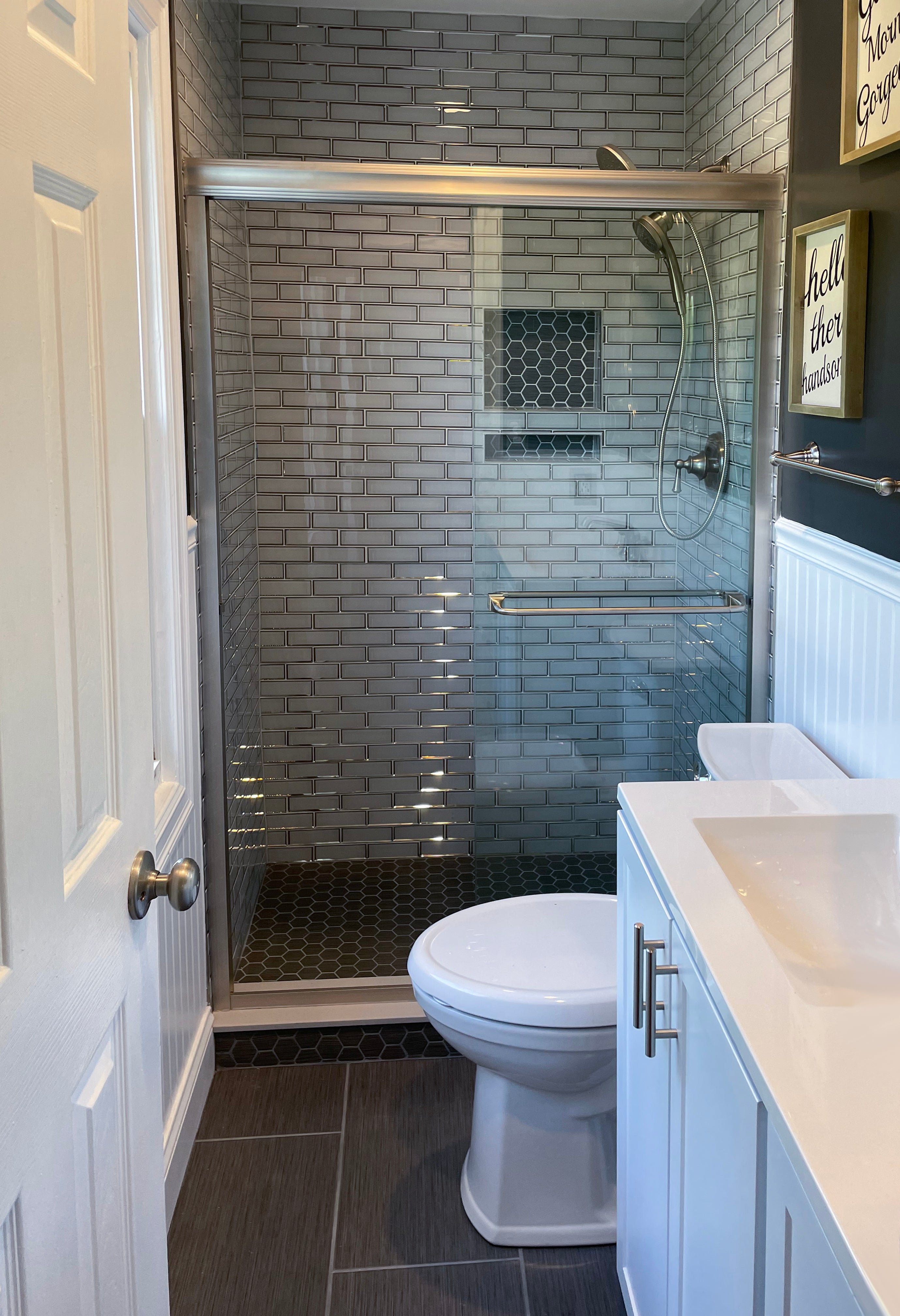 CLICK ON A CIRCLE on the bathroom images below for details on the products we used to create this stunning space, and get inspired!